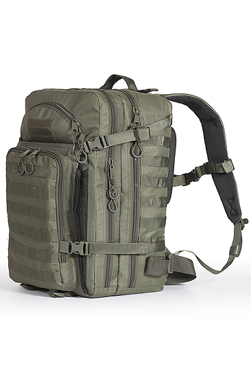 - Объёмный фронтальный карман-книжка на фастексах и на молнии со стропами для внешней подвески