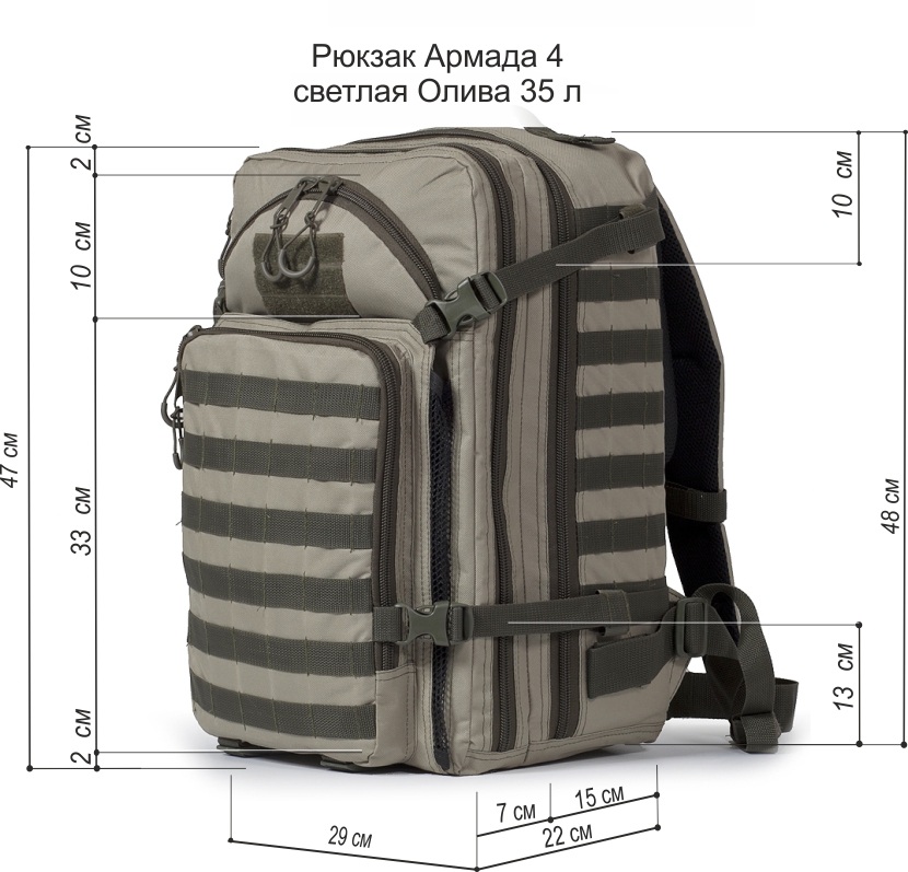 - габаритные размеры рюкзаков (ширина глубина высота в сантиметрах) соответственно вместительности — 35 л (32х23х45), 45 л (35х24х53)