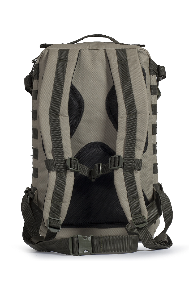 Вместительный тактический рюкзак увеличенного объема со съёмным поясным ремнём. Данная модель рассчитана на использование в полевых условиях, и в городе. Тыльная сторона рюкзака обшита сетчатой тканью с воздуховодом, что поможет спине дышать при активных физических нагрузках и в жаркую погоду. Большое количество отделений и карманов отличает эту модель от предыдущих в линейкеТехнические характеристики