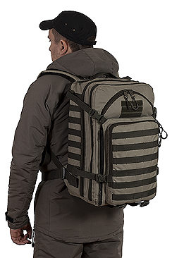 - Объёмный фронтальный карман-книжка на фастексах и на молнии со стропами для внешней подвески
