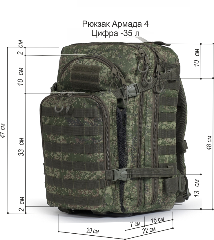 Вместительный тактический рюкзак увеличенного объема со съёмным поясным ремнём. Данная модель рассчитана на использование в полевых условиях, и в городе. Тыльная сторона рюкзака обшита сетчатой тканью с воздуховодом, что поможет спине дышать при активных физических нагрузках и в жаркую погоду. Большое количество отделений и карманов отличает эту модель от предыдущих в линейкеТехнические характеристики