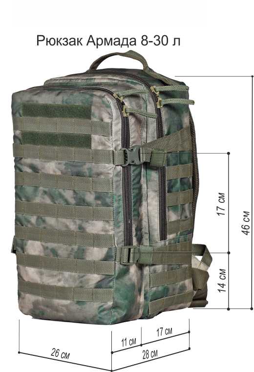 - габаритные размеры рюкзаков (ширина глубина высота в сантиметрах) соответственно вместительности — 20 л (23х22х44), 30 л (26х28х46)