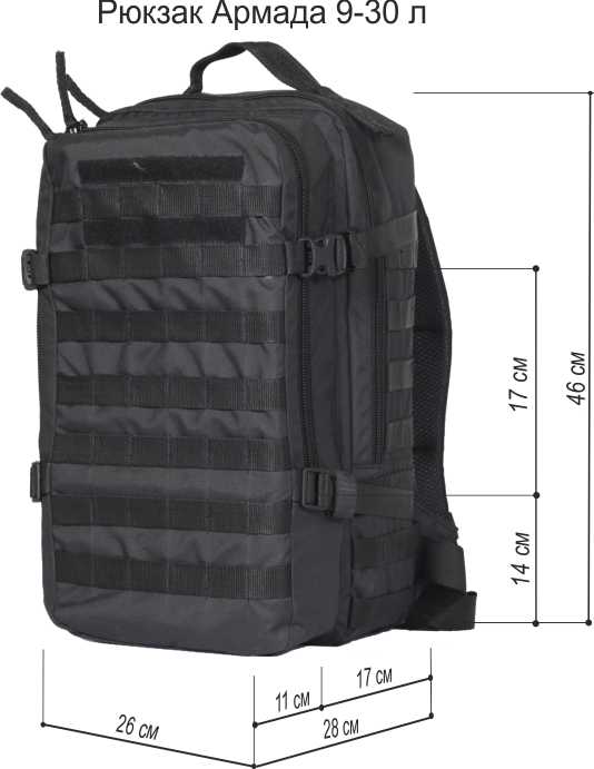 - габаритные размеры рюкзаков (ширина глубина высота в сантиметрах) соответственно вместительности — 20 л (23х22х44), 30 л (26х28х46)