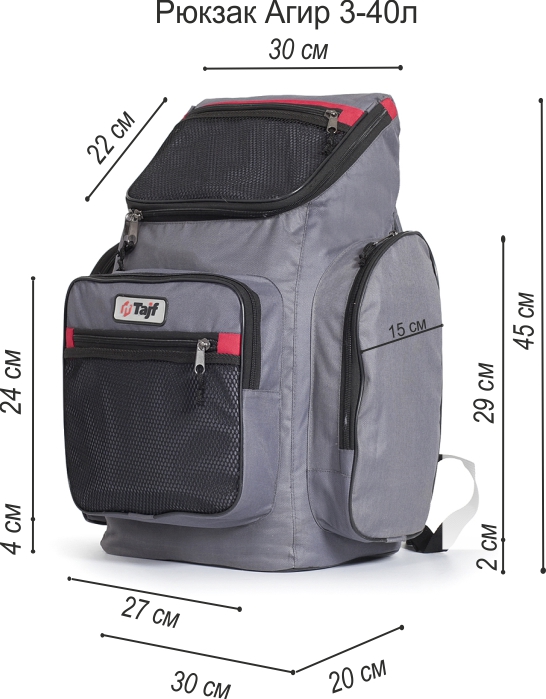 - габаритные размеры рюкзаков (ширина глубина высота в сантиметрах) соответственно вместительности - 35л (29х19х43), 40л (30х20х45), 50 л (33х22х50)
