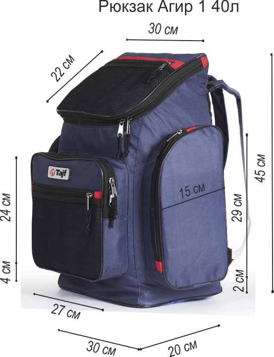 - габаритные размеры рюкзаков (ширина глубина высота в сантиметрах) соответственно вместительности - 35л (29х19х43), 40л (30х20х45), 50 л (33х22х50)