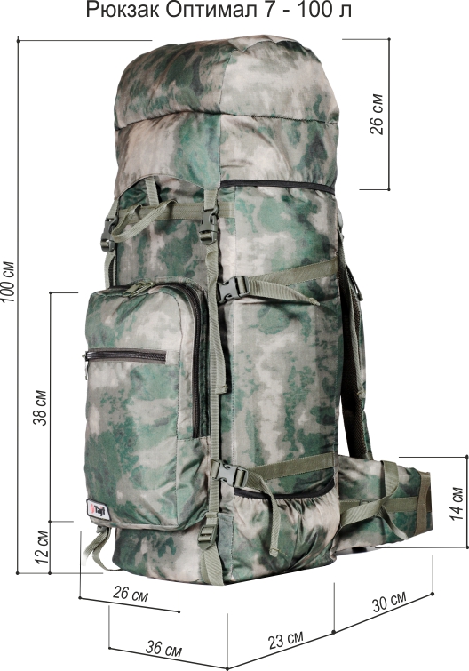 - габаритные размеры рюкзаков (ширина глубина высота в сантиметрах) соответственно вместительности - 60л (34х20х80), 70 л (35х20х85), 80 л (35х21х90), 90 л (35х22х95), 100 л (36х23х100), 120 л (36х23х100)