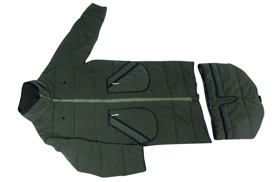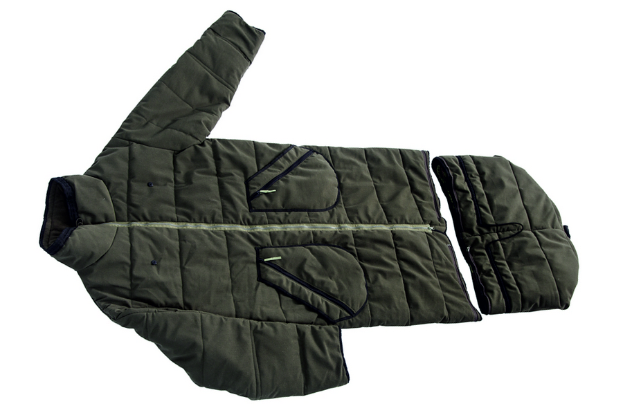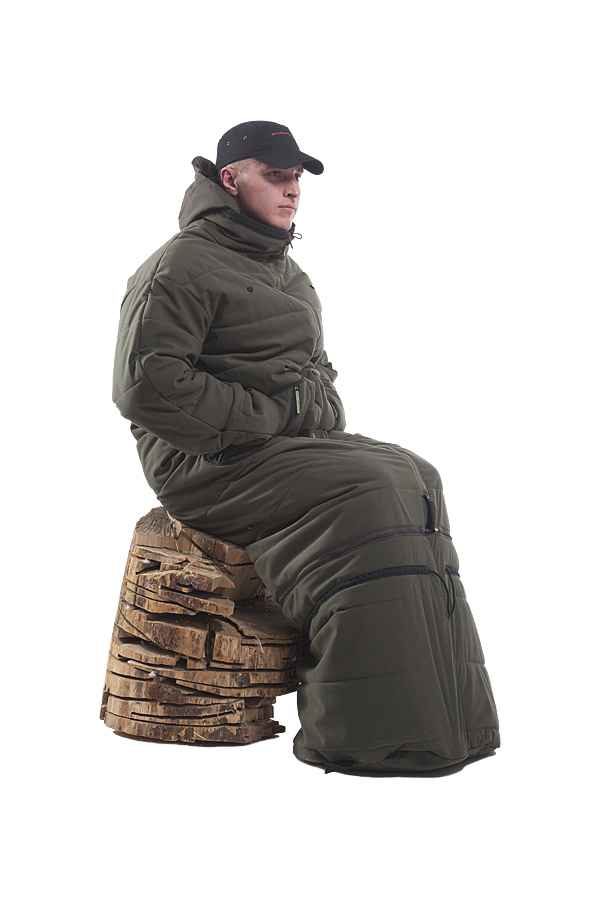 Универсальный  утепленный засидочный мешок с рукавами, может использоваться и как спальник. Благодаря молниям,  в нем можно не только сидеть, но и передвигаться, растегнув низ  заранее предусмотренным способом. Нижняя отстёгивающаяся часть на подкладке, которая крепиться к мешку при помощи кнопок. Верхняя часть свободного кроя, с центральной застёжкой — молнией. По уровню бёдер имеются объёмные функциональные карманы.