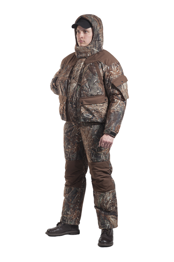 Комфортный костюм идеально подойдет для охотников и любителей активного отдыха. На куртке 5 внешних и 1 внутренний карман на молнии. Материал костюма не шуршит и не промокает. Капюшон в форме трубы отлично защитит от ветра и снегаТехнические характеристики