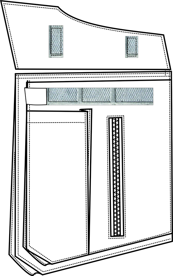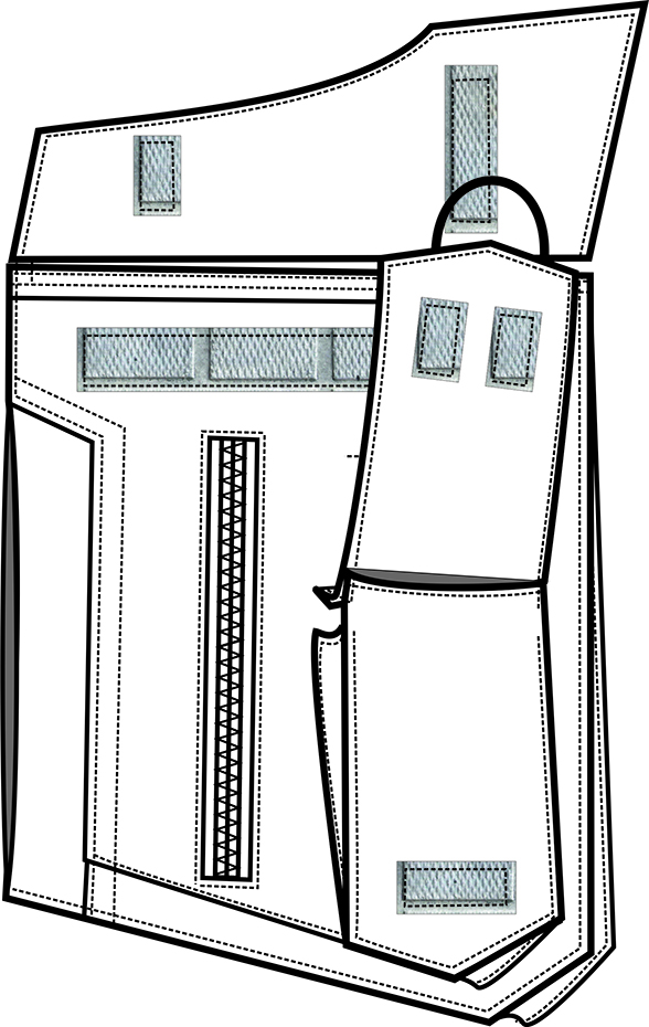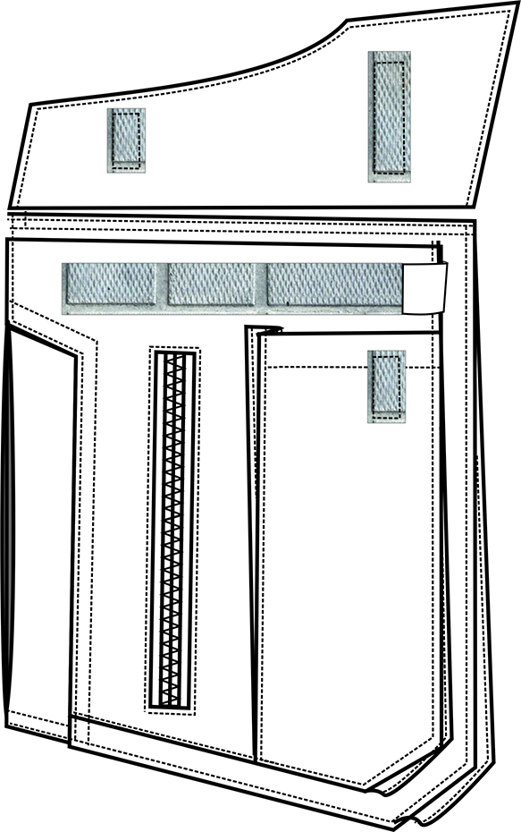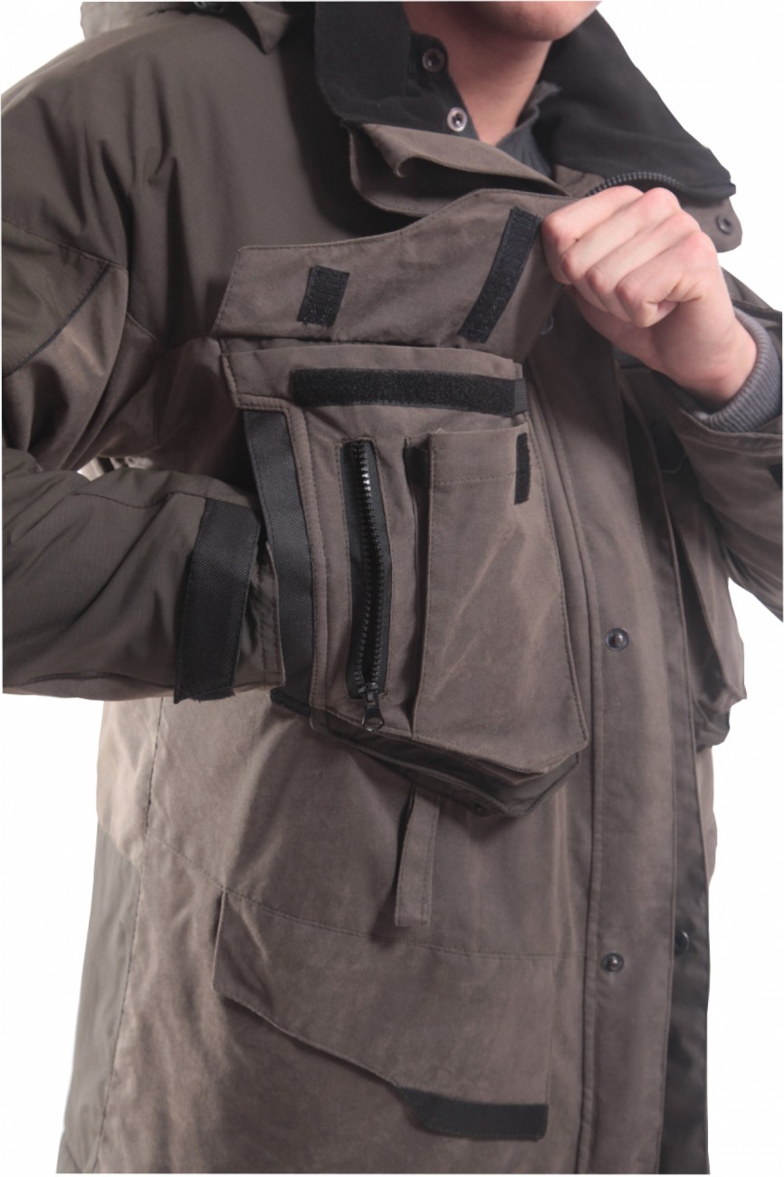 - два многофункциональных нагрудных накладных кармана с клапаном состоят из бокового кармана, накладного кармана под рацию, одного прорезного на молнии для документов и одного внутреннего