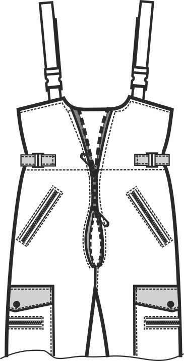 - высокая спинка полукомбинезона