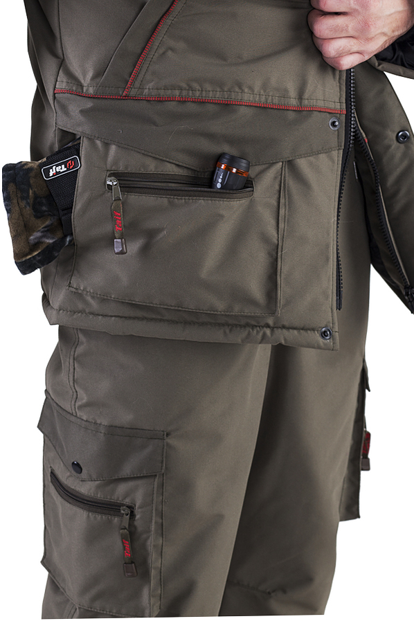 Практичный костюм предназначен для любителей рыбалки, охоты и активного отдыха в зимнее время. Это костюм классического кроя с длинной курткой и полукомбинезона, изготовленных из современных ветрозащитных и влагозащитных материалов. В качестве верхнего покрытия используется качественная мембранная ткань микрофибра (5000\5000). Костюм с многофункциональными карманами. Удобный и тёплый капюшон в форме трубы, с отстёгивающейся меховой опушкой из искусственного меха, защищающий от ветра и холода при самых низких температурах. Комбинезон с высокой спинкой, регулирующимися лямками, разъёмом по низу брюк. Утеплитель обеспечивает тепло и комфорт даже в условиях продолжительной малоподвижности.Технические характеристики