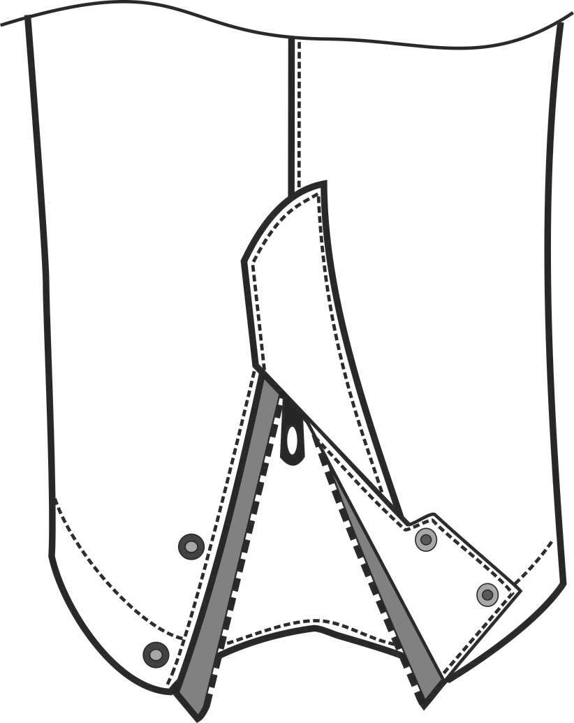 - разъём по низу брюк на молнии