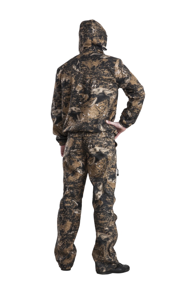 Костюм отлично подойдёт не только для охоты и рыбалки, но и также для туризма и путешествий в условиях дикой природы. Выполнен из смесовой ткани с содержанием хлопка и с водоотталкивающей пропиткой. Верхний слой ткани с ПИЧ эффектом — это мягкая бархатистая поверхность. Костюм в модном в этом сезоне Animal принт. Ткань удобна и проста в уходе.Технические характеристики