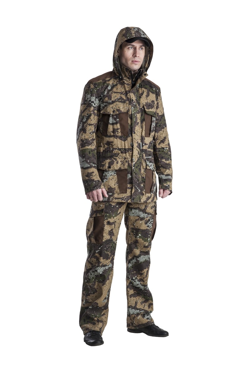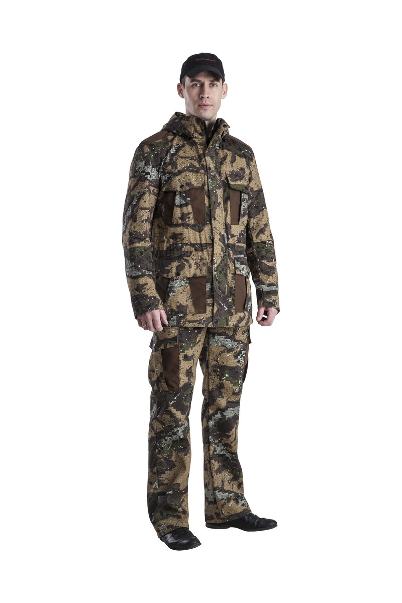 Стильный и функциональный костюм в стиле «Сафари» отлично подходит не только для охоты и рыбалки, но и для города. Выполнен из смесовой ткани с содержанием хлопка и с водоотталкивающей пропиткой. Верхний слой ткани с ПИЧ эффектом — мягкая бархатистая поверхность. Костюм выполнен в актуальной в этом сезоне расцветке Стилизованная цифра. Ткань очень проста в уходе.