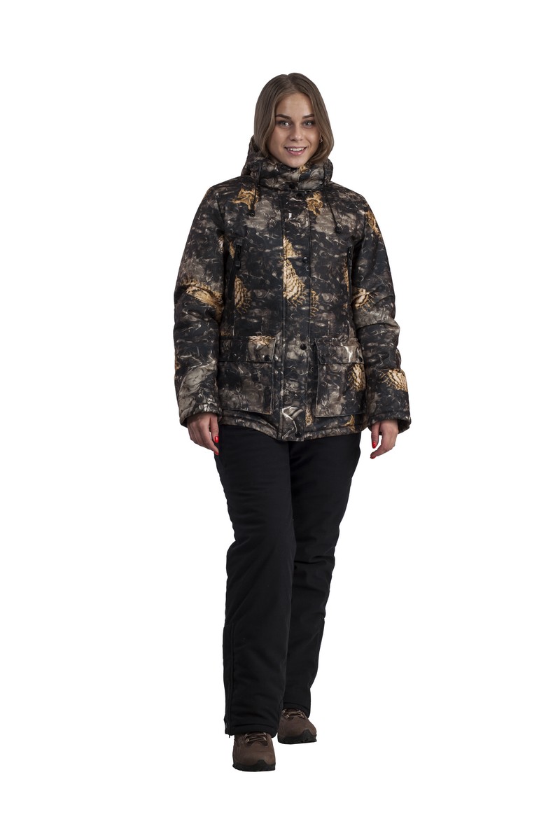 Универсальный утеплённый комфортный костюм для зимней рыбалки, охоты и активного отдыха.Выполнен из ветронепродуваемой и водонепроницаемой мембранной ткани. Верхний слой ткани с ПИЧ эффектом — это мягкая бархатистая поверхность. Костюм в модном в этом сезоне Animal принт. Ткань удобна и проста в уходе. Предназначен для защиты от пониженных температур, ветра, атмосферных осадков в зимний период. Состоит из куртки и полукомбинезона с эластичными регулируемыми лямками. Куртка с ветрозащитной планкой.Капюшон анатомического кроя, отстёгивающийся, регулируется по краю обзора. Утеплённый полукомбинезон с завышенной талией. По объёму регулируется поясом с фиксаторами, стягивающими талию, которые в свою очередь по спинке скрыты в кулисе. Отлично сидит на фигуре. Для удобства переобувания по низу штанин — расширитель на молнии с планкой.Технические характеристики