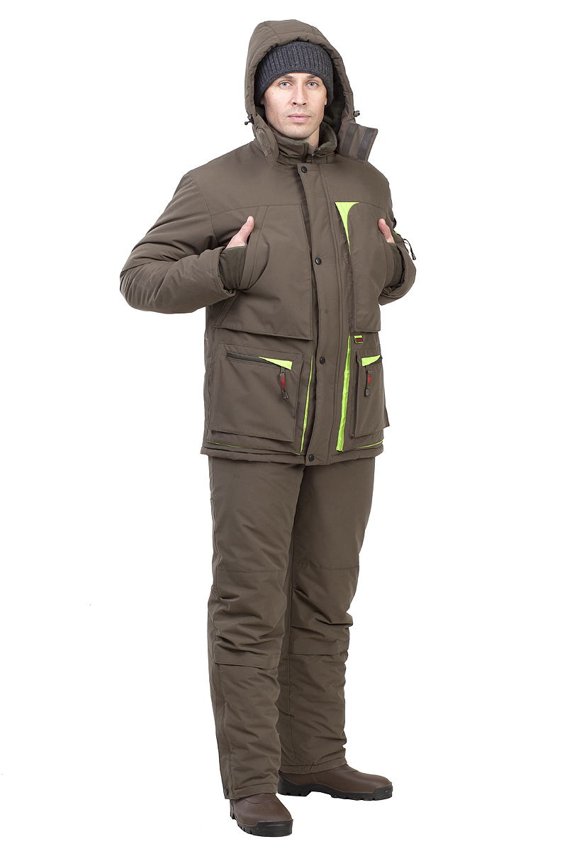 Универсальный зимний костюм для охоты до -25 градусов. Из плотной, немнущейся ткани канада с водоотталкивающей поверхностью, которая не шелестит при сминании и во время носки одежды. Костюм теплый с большим количеством удобных и функциональных карманов Куртка с отстегивающимся капюшоном и регулирующимися флисовыми манжетами с фиксатором. Куртка на флисовом подкладе. Полукомбинезон утеплен флисом в области туловища. Эластичная лента в области талии обеспечит хорошее прилегание к телу, низ брюк с регулировкой по обуви.Технические характеристики