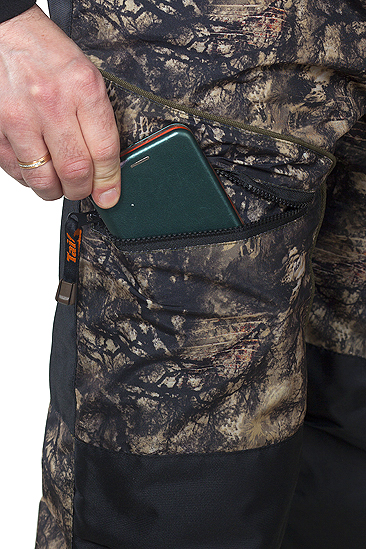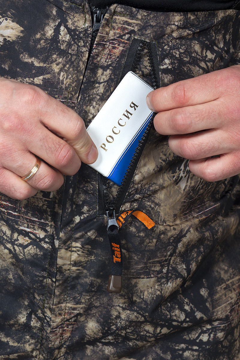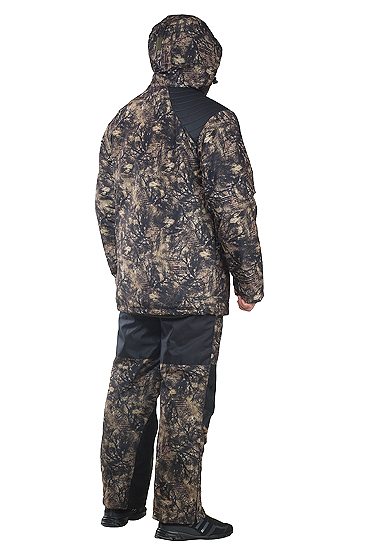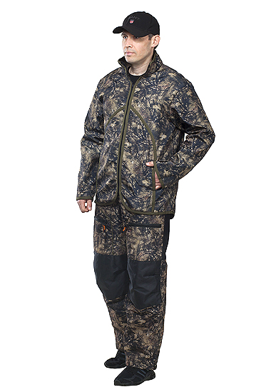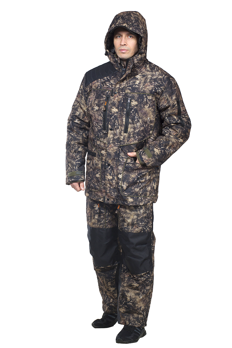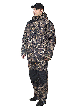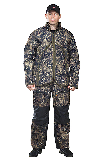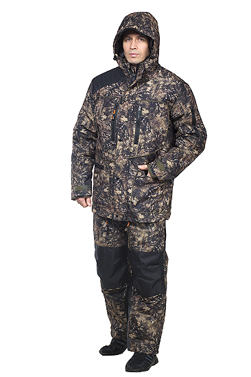 Для зимнего сезона специально разработан многослойный костюм тройка, состоящий из куртки, куртки подстёжки и полукомбинезона. Основной материал костюма — мембранная ткань с показателями 7000/ 7000 (водостойкость/паропроницаемость), для отделки и прочности детали и ткани «Кошачий глаз»- супер стойкая к износу . Подстёжка с рукавами - из специальной многослойной ворсовой мембраны. В качестве утеплителя используется современный синтетический материал .Многофункциональные большие карманы для хранения необходимых аксессуаров. По линии плеча настрочена деталь усиления с изолоном, для удобства носки ящика или ружья. Капюшон с регулировкой объема в двух направлениях. Отстёгивающаяся подстёжка с дополнительными карманами. Полукомбинезон с высокой облегченной спинкой, в области колена и задней половинке усиление . Костюм разработан для активного отдыха на природе в зимний период.Технические характеристики