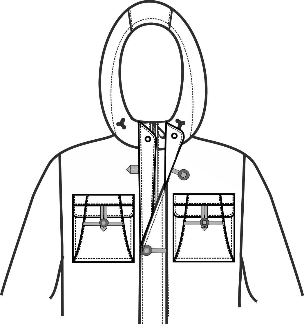 - Втачной капюшон с регулировкой по обзору на шнур с фиксаторами