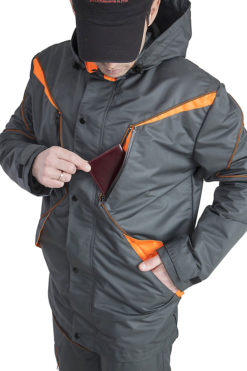 - Нагрудные карманы на влагостойкой молнии.