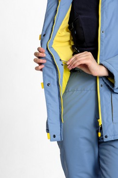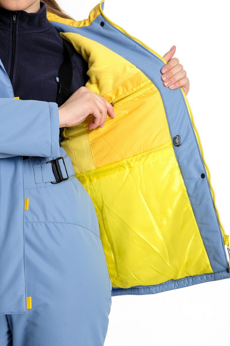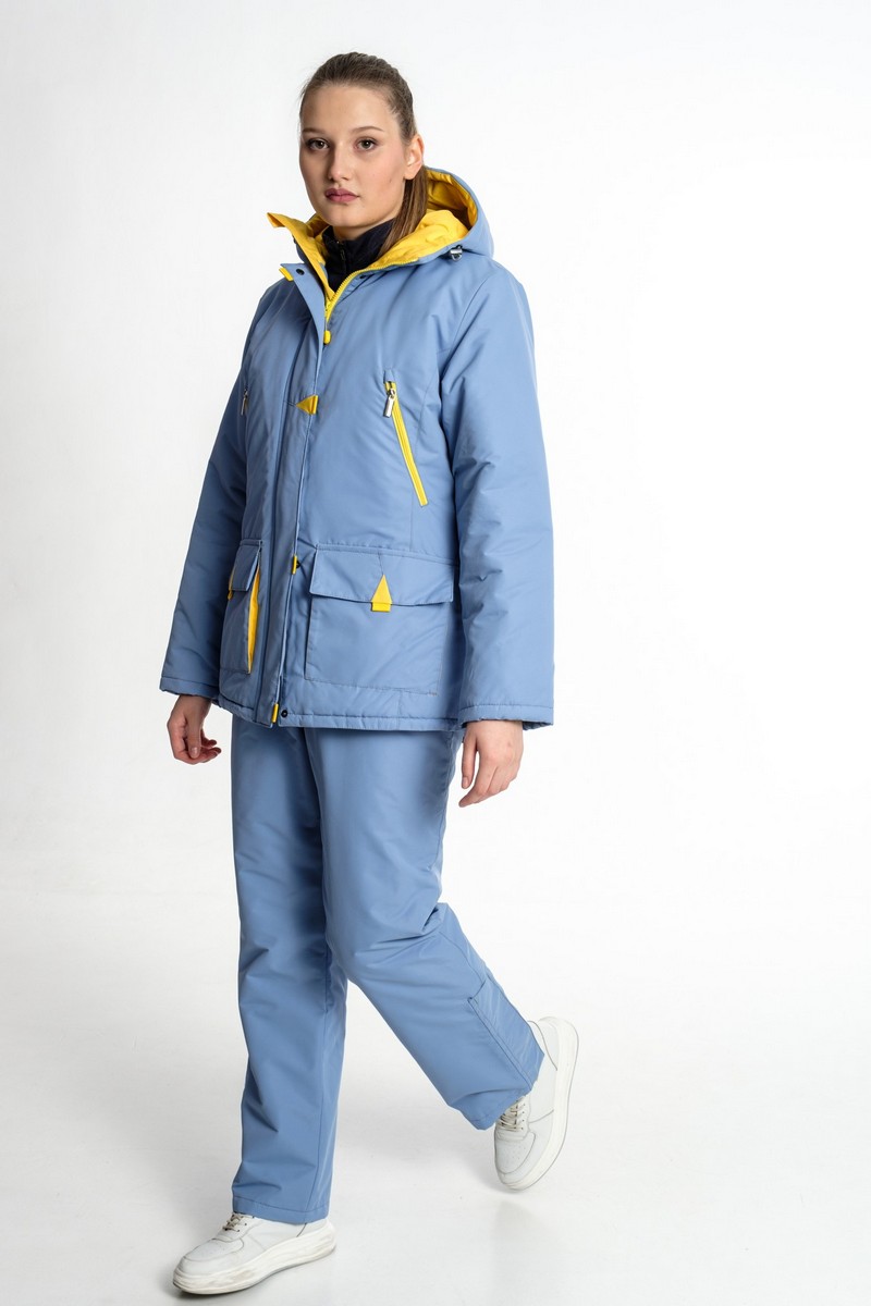 Утеплённый нарядный комфортный костюм для городских прогулок и активноо отдыха. Выполнен из ветронепродуваемой и водонепроницаемой прочной и стойкой к износу ткани насыщенного голубого цвета. Материал отводит внутреннюю влагу наружу. Предназначен для защиты от пониженных температур, ветра, атмосферных осадков в зимнее время, а возможно и в весенне-осенний период. Куртка на молнии с ветрозащитной планкой на кнопках. Капюшон анатомического кроя регулирующийся по краю обзора. Утеплённый полукомбинезон с завышенной талией. По объёму регулируется поясом в талии на утяжках, которые по спинке скрыты в кулисе. Отлично сидит на фигуре. Для удобства переобувания по низу штанин есть расширитель на молнии с планкой.Технические характеристики