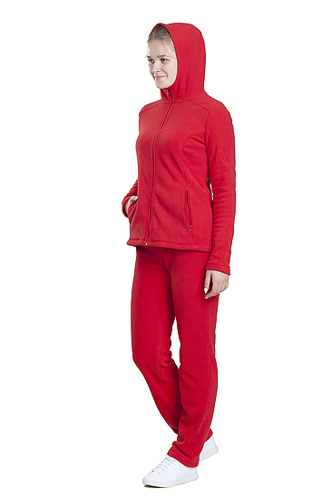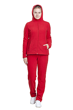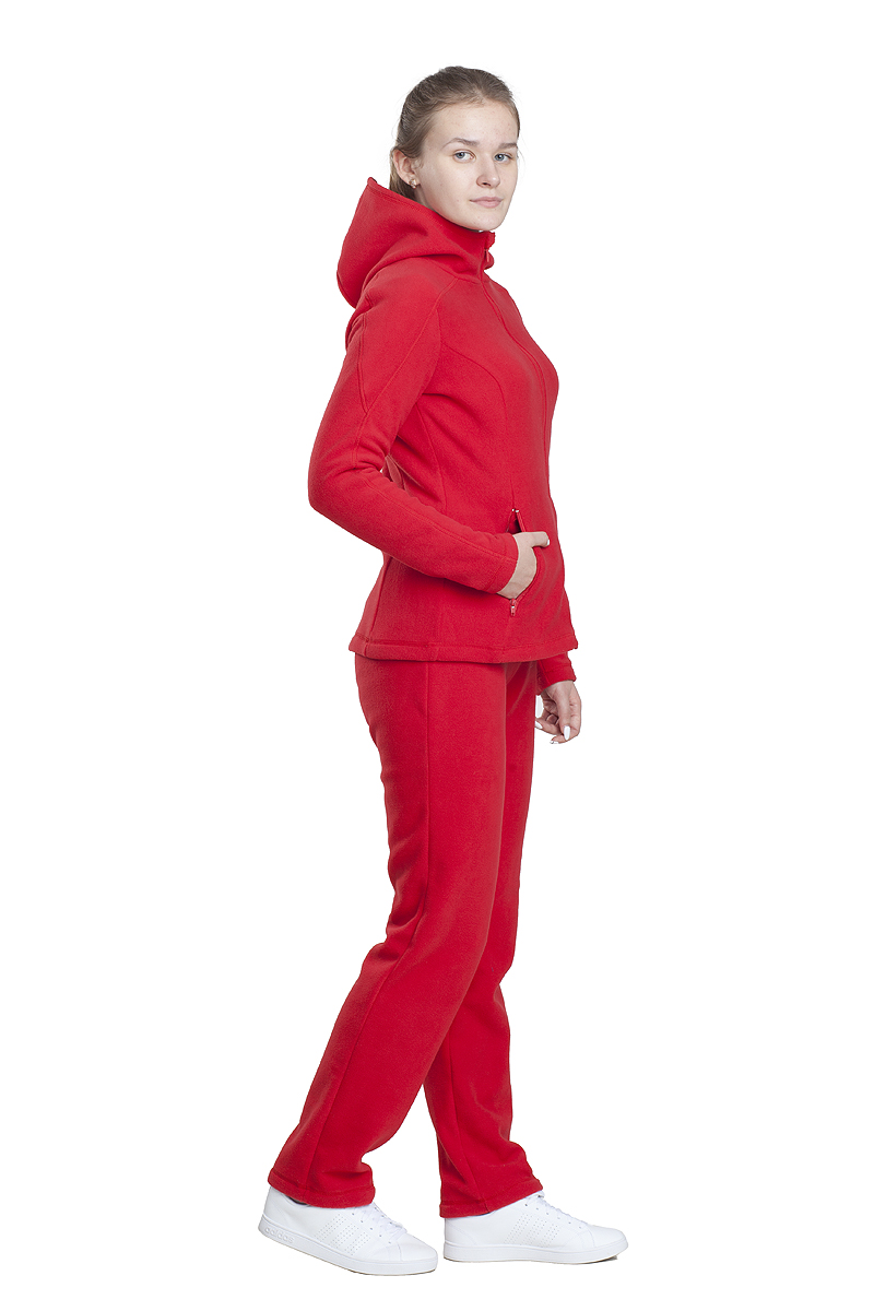 Нарядный и комфортный приталенный женский костюм, состоящий из куртки и брюк. Удобно сядет по фигуре. Выполнен из мягкого, легкого и прочного, гипоаллергенного эластичного, современного материала, - полафлиса. Куртка с капюшоном, приталенна и идеально сядет по фигуре. Брюки заужены, и фиксируются эластичной тесьмой на уровне талии. Может применяться для пододевания в зимнее время.Технические характеристики
