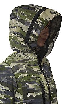 Противоэнцефалитный летний костюм. Практичный костюм снажбен остегивающейся противомоскитной сеткой для защиты от насекомых. Ткань Грета КМФ, оригинальный принт.
