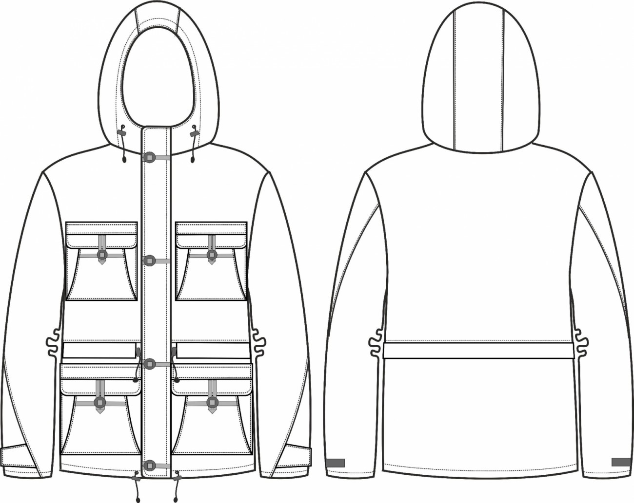 - четыре кармана на пуговицах