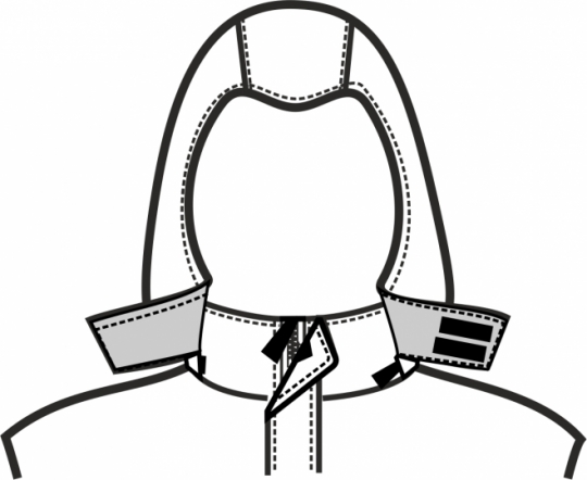- регулируемый капюшон с анатомическими утяжками, отстёгивающийся на молнии
