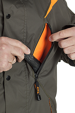 - Нагрудные карманы на влагостойкой молнии.