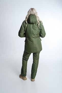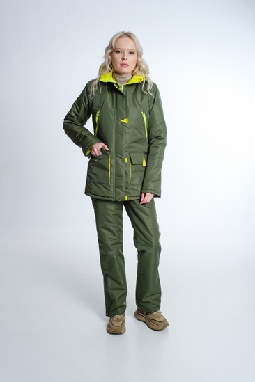 Универсальный утеплённый комфортный костюм для активного отдыха и городских прогулок. Выполнен из ветронепродуваемой и водонепроницаемой прочной, легкой и стойкой к износу ткани. Материал отводит внутреннюю влагу наружу. Предназначен для защиты от пониженных температур, ветра, атмосферных осадков в зимнее время, а возможно и в весенне-осенний период. Куртка на молнии с ветрозащитной планкой на кнопках. Капюшон анатомического кроя регулирующийся по краю обзора. Утеплённый полукомбинезон с завышенной талией. По объёму регулируется поясом в талии на утяжках, которые по спинке скрыты в кулисе. Отлично сидит на фигуре. Для удобства переобувания по низу штанин — расширитель на молнии с планкой.Технические характеристики