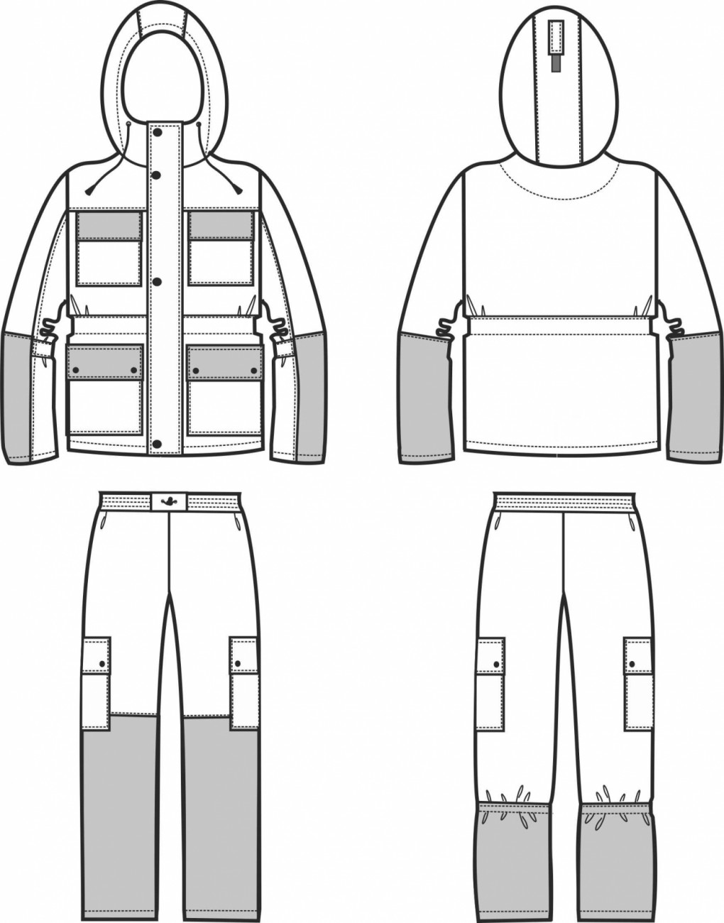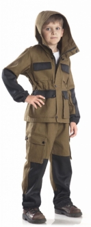 Летний ветрозащитный костюм, состоящий из куртки и брюк, прекрасно защитит от ветра, небольшого дождя и хлёстких веток, сгладит перепады температур. Куртка удлинённая, свободного кроя с капюшоном в форме трубы.Технические характеристики