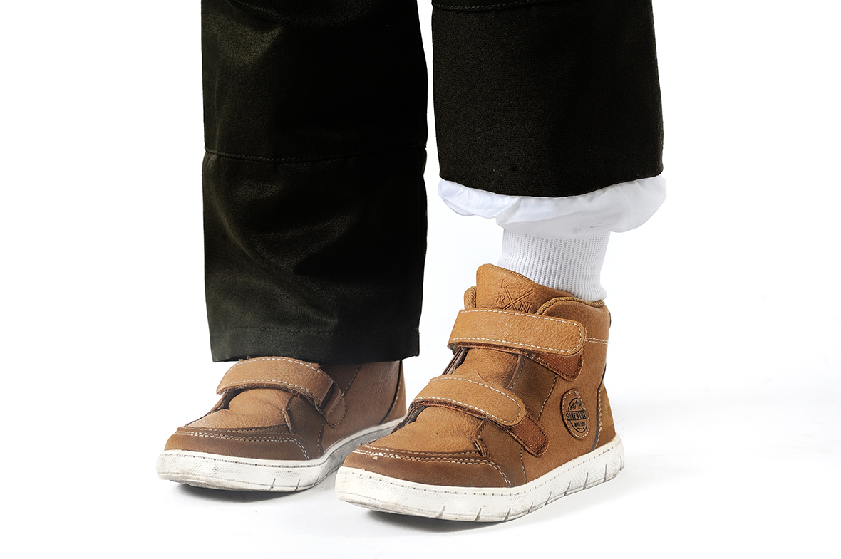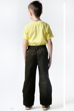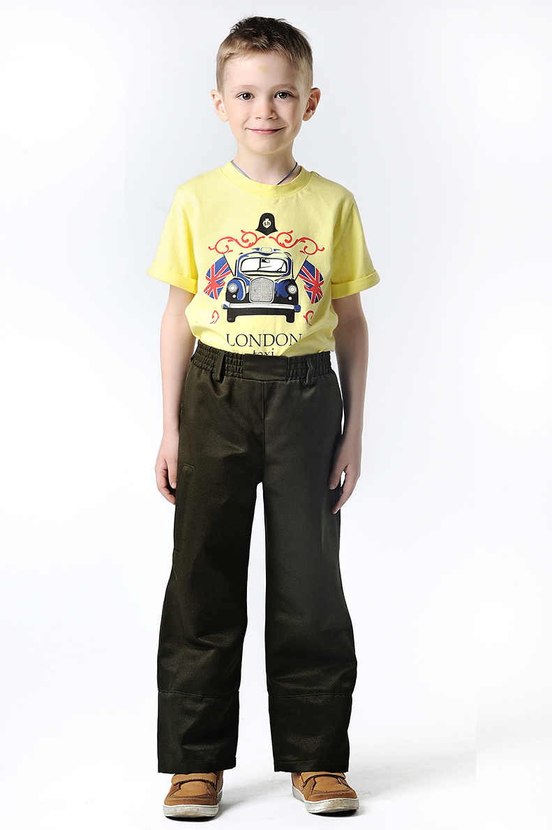Брюки на поясе фиксируются эластичной тесьмой для более плотного прилегания по талии.