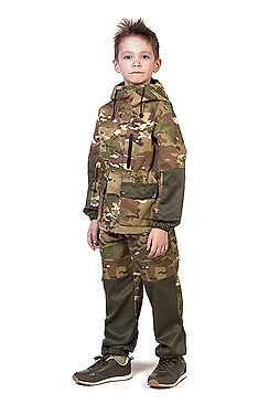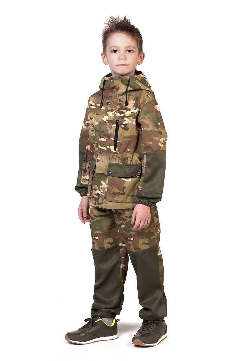 Летний ветрозащитный костюм, комбинированный из смесовки двух цветов - хаки и мультикам. Состоит из куртки и брюк. Прекрасно защитит от ветра, небольшого дождя, веток, перепадов температур.Технические характеристики