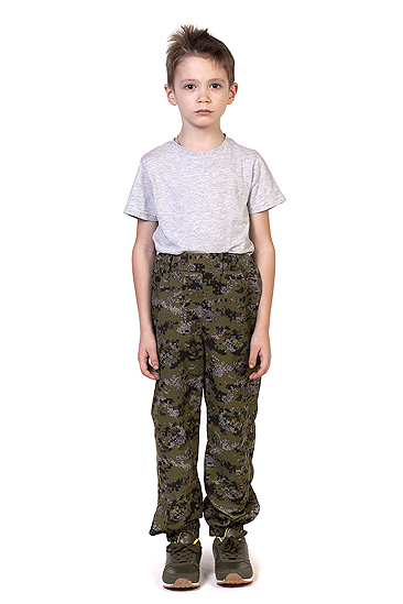 Брюки прямого силуэта, в талии и по низу на эластичной тесьме.