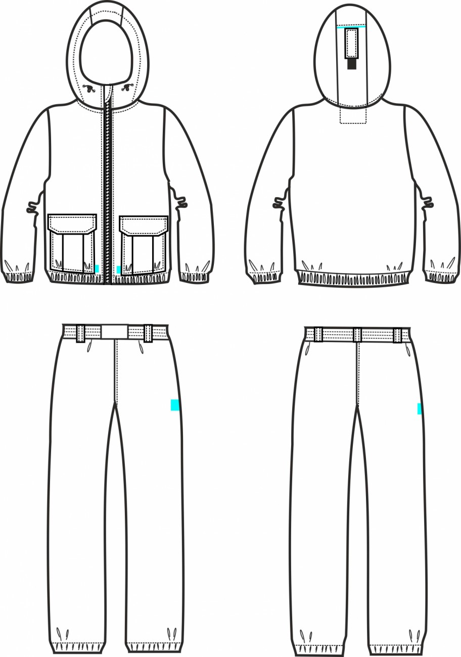 Куртка прямого силуэта на молнии, с двумя карманами и капюшоном на утяжке. Низ изделия и рукавов фиксируются эластичной тесьмой. Небольшие светоотражающие метки на куртке и по бокам брюк сделают заметным и безопасным перемещения вашего ребенка в темное время суток.