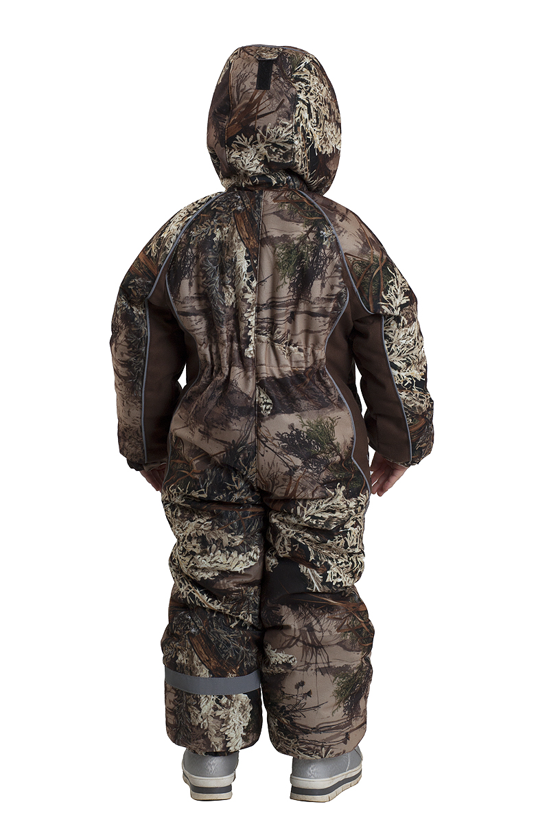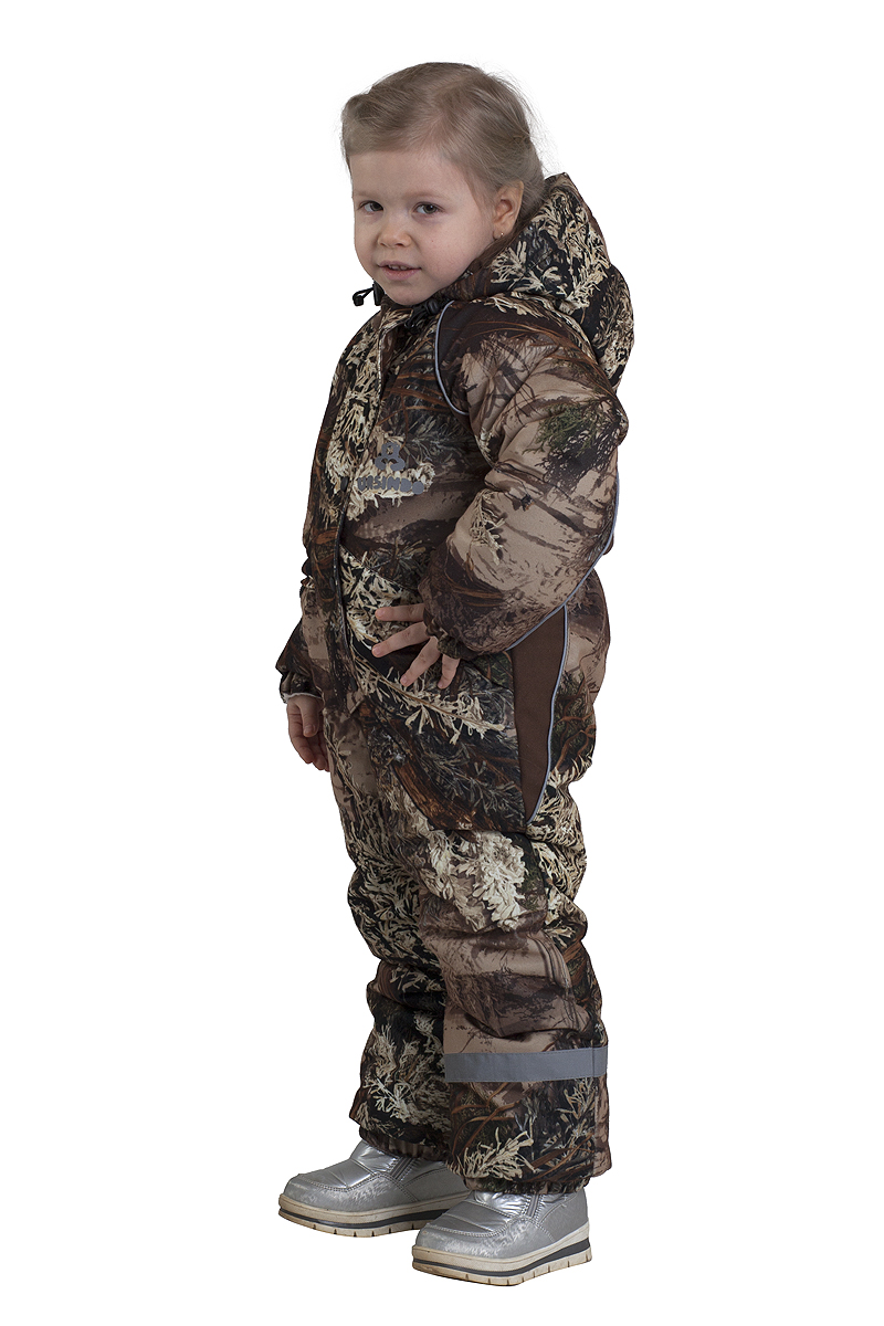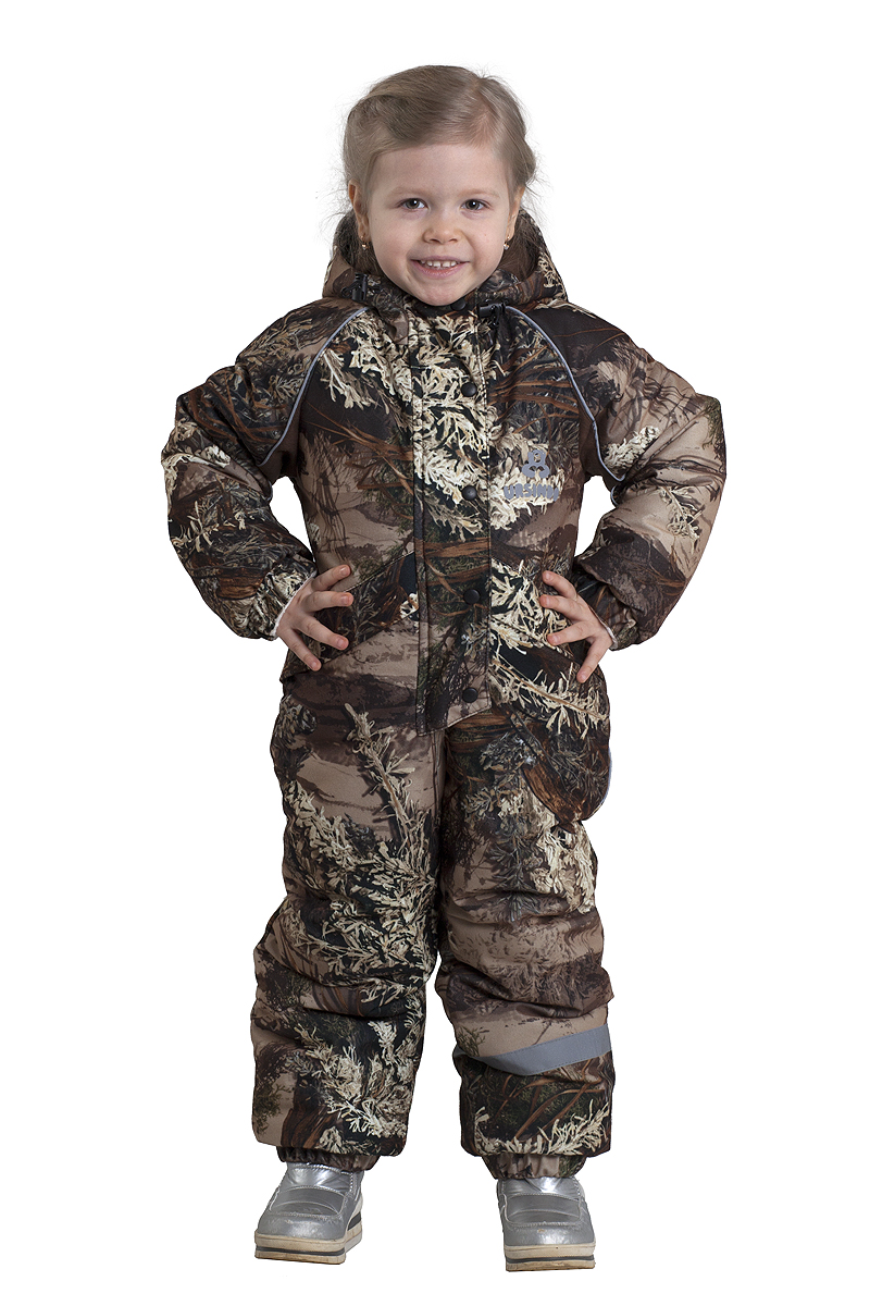 Утепленный комбинезон в комфляжном принте отлично подойдет для девочки на холодную зиму. Утепление синтепоном усилено флисом в области туловища. Канты со светоотражающими метками на капюшоне во швах брюках, на рукавах. Пошит из современной ветронепродуваемой мембранной ткани Алова. Специальная ткань плюс качественный утеплитель дают отличную теплозащиту суровой зимой. Не шуршит.Технические характеристики