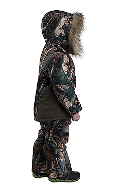 Утепленный костюм на холодную зиму, из мягкой и прочной нешуршащей ткани с дополнительной защитой от холода ветра и дождя. Утепление из синтепона усилено флисом в области туловища. Куртка прямого силуэта с утяжкой капюшона и отстегивающимся мехом. Трикотажные манжеты в рукавах и ветрозащитный клапан по низу куртки и брюк - обеспечат дополнительную надежную защиту от ветра в холода. Отражающие метки по капюшону, куртке и по низу брюк для дополнительной безопасности ваших детей в темное время суток. Брюки на подтяжках, с резинкой в области талии и отражающими метками по бокам.Технические характеристики